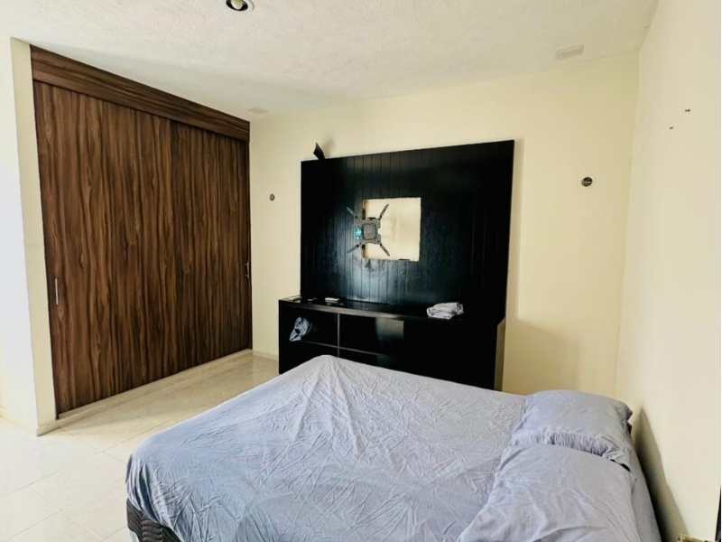 Recámara principal con cama Queen, mueble de TV y burós volados