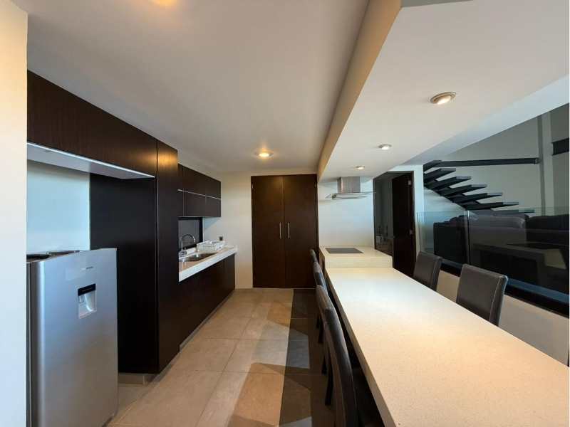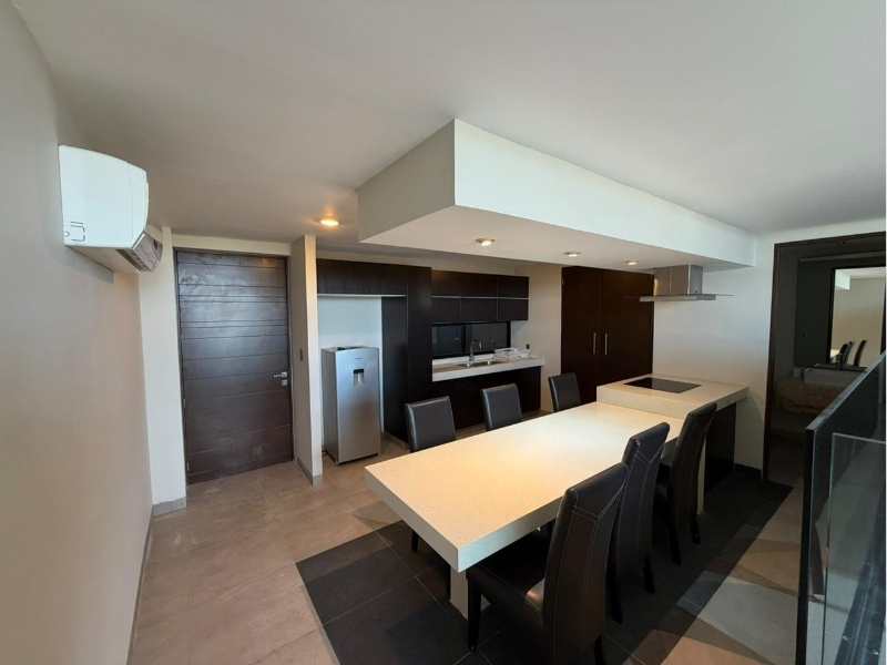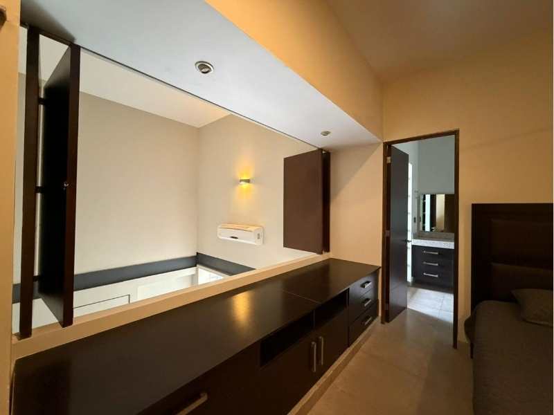 Aire acondicionado, Cocina, Estacionamiento, Closet, Baño completo, Bodega, Dos plantas, Elevador, Fraccionamiento privado, Seguridad 24 horas